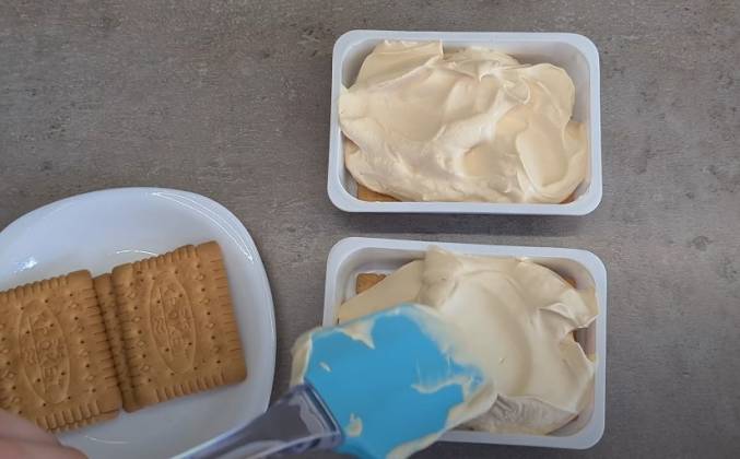 2. Советую заранее измерить форму и подобрать печенье по размеру, Тогда не придется его обрезать. На дно формы уложить печенье выложить лопаткой крем. Старайтесь хорошо уплотнять, особенно по бокам,