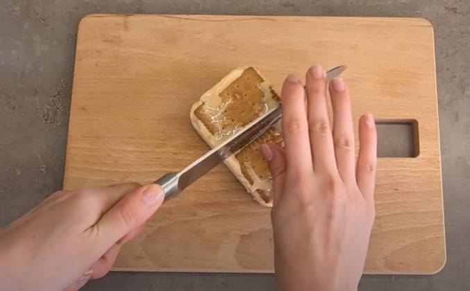 3. Так как крем пышный, то бывает получаются пустоты. И потом это отражается на внешнем виде сэндвича. Поверхность разровнять лопаткой. Сверху уложить печенье.