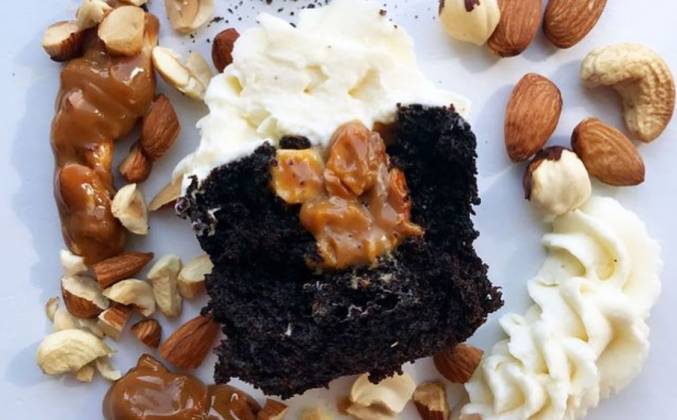 Шоколадные капкейки со сгущенкой варенной, орехами и кремом