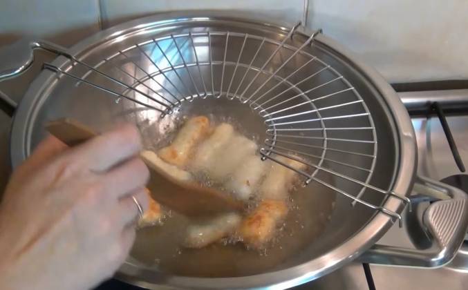 3. Я уже разогрела масло в сковороде ВОК Погружаем сюда палочки. В процессе приготовления палочки переворачиваем. Их нужно подрумянить со всех сторон. Готовые палочки выкладываем на решётку или на салфетку. Нужно удалить лишнее масло. Сверху палочки посыпаем сахарной пудрой. Готово! Такая альтернатива сырникам позволит взглянуть на привычное блюдо по-новому.Видео рецепт ютуб ниже 👇