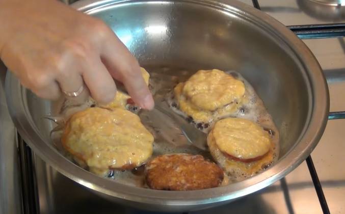 3.  Выкладываем на сковороду. Как только низ подрумянился - можно переворачивать. По времени это около 2-3 минут. Смотрите по своей сковородке. Переворачиваем на другую сторону и так же подрумяниваем. Проверяем: снизу уже подрумянилось. Наша закуска готова. Выкладываем её на тарелку. Подавать такую закуску нужно в тёплом виде. Можно подавать с зеленью.Видео рецепт ютуб ниже 👇