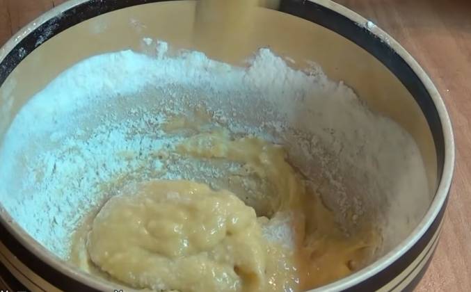 2. Если мясо отваривали в солёной воде, то соли надо добавить меньше. Может быть, вообще не надо добавлять соль. Перчим. Солим. Всё хорошо перемешиваем. Чтобы начинка не была сухой, я обязательно добавляю сливочное масло. Теперь всё обжариваем 5 минут. Также на маленьком огне. Масло сливочное для начинки не жалейте. Я добавила его ещё. В общей сложности получилось где-то 80 г сливочного масла. Начинка готова. Выключаем нагрев. Оставляем начинку остывать. Теперь займёмся блинным тестом. Берём миску. Разбиваем сюда 2 яйца. У каждой хозяйки есть свой рецепт приготовления блинов. Можно воспользоваться любым. Немножко соли. Сахара. У нас блины с начинкой, поэтому они не должны быть лишком сладкими. Хорошо перемешиваем. Добавляем сюда немного муки. Делаем тесто густотой, как у сметаны. Я привыкла делать блинное тесто "на глаз": добавляю немного муки, затем молока, потом ещё немного муки...