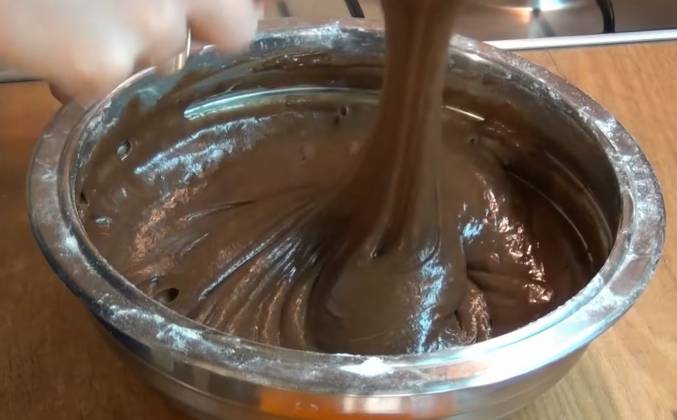 2. Добавляем муку, просеивая через сито. Замешиваем тесто до консистенции густой сметаны. Тесто получилось, как густая сметана. Теперь я добавлю изюм, сухофрукты. Можно также добавить орехи. Ещё раз перемешиваем. Теперь берём форму для выпечки. У меня силиконовая. Дно смажу немного растительным маслом. Теперь перекладываю тесто в форму. Коврижку ставим выпекаться в разогретую до 180 С духовку.