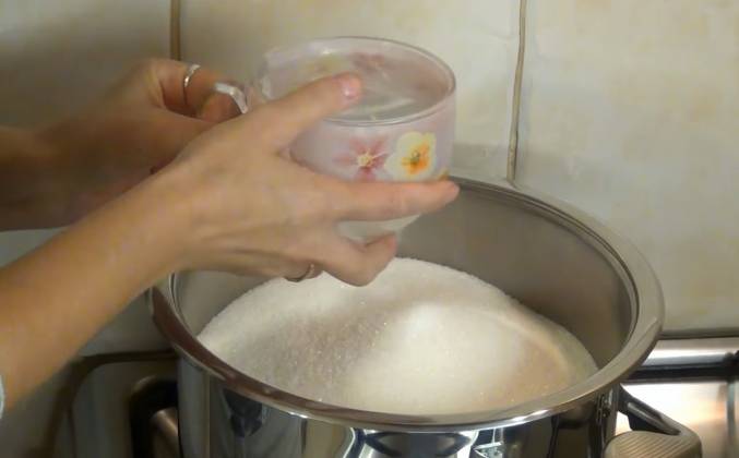 3. Ставлю на средний нагрев. Как только сахар начнёт плавиться, я сразу же уберу тарелку. Сахар растворился. Наша тарелка полностью свободна. Я её убираю. Теперь доводим варенье до кипения и провариваем в течение 15 минут. Ранетки прокипели 15 минут. Отключаю нагрев и оставляю их постоять на 6-8 часов, без крышки. Варенье постояло 8 часов. Ранетки поменяли свой цвет, хорошо пропитались сиропом. Теперь последний раз ставим их на огонь. Доводим до кипения и также варим 15 минут. Варенье готово. Можно отключать нагрев. Помещаем варенье в стерилизованные баночки. Пусть эти баночки невероятно вкусного варенья порадуют вас за чаепитием.Видео рецепт ютуб ниже 👇