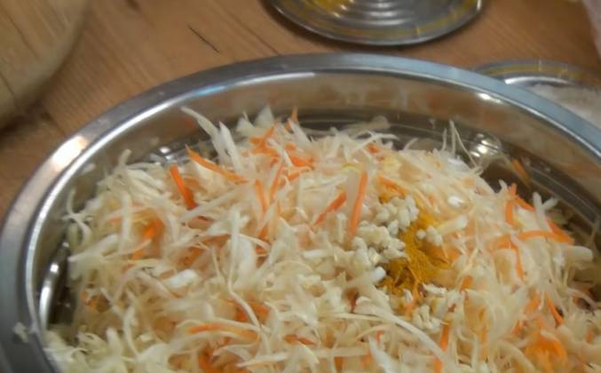 Капуста с морковью по корейски быстрого приготовления. Традиционный рецепт капусты по-корейски подразумевает использование пекинской капусты. Её с легкостью можно заменить на белокочанную. Тем более, что она более доступна, полезна и вкусна. Будем готовить сегодня салат "Капуста по-корейски с куркумой". Для рецепта нам понадобятся: белокочанная капуста (около 1 кг), 1 ч.ложка куркумы, 1 кг моркови, 2 зубчика чеснока, 125 мл воды, 0,5 ст.ложки растительного масла, 0,5 ст.ложки яблочного уксуса, 100 г сахара и 1 ч.ложка соли.
