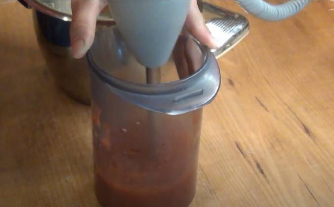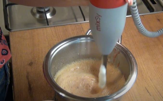 2. Перемешали. Добавляем щепотку соли. Берём сметану. Снова перемешиваем. Блендер больше не нужен - убираем его. У нас остались только сода и мука. Берём пол чайной ложечки соды. Муку добавляем постепенно, чтобы получилось жидкое тесто. Тесто такое, как на оладьи, т.е. как густая сметана. Берём венчик и перемешиваем. Добавляем ещё муку. Снова перемешиваем. Получается розовое красивое тесто. Домешиваешь? Чем тесто пахнет? -