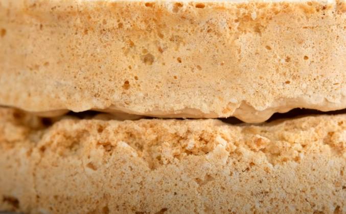 2. Выложите немного смеси на противень для приготовления обсыпки боков торта. А остальное выложите в кольца (диаметр 18 см) поровну и разровняйте. Выпекайте при 140 С 30 минут без конвекции, а затем еще 120 минут при 100 С. Приготовим крем Шарлотт. Поставьте сотейник на плиту, налейте молоко (150 гр), засыпьте сахар (185 гр), добавьте 3 желтка и доведите до кипения постоянно помешивая на средней мощности плиты.