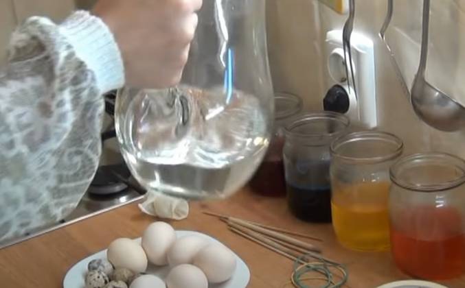 4. Допустим, тонкие. Я уже сделала несколько заготовок, чтобы это было нагляднее. Берём яйцо. Приклеиваем на него полоски. Создаём какой-то определённый рисунок. Также зафиксировали яйцо при помощи капрона. Опускаем его в красный цвет. Последний способ - это мраморные яйца. Мы будем использовать перепелиные. У них такой своеобразный рисунок. Очень хорошо получится мраморный цвет. Каждое яйцо окунаем в банку с разным цветом. Синий, жёлтый, зелёный, красный, оранжевый. Даём им какое-то время, чтобы они окрасились. Готовые яйца смазываем растительным маслом или жиром для блеска. Пасхальные яйца станут основным украшением праздничного стола. Вместе с пасхой и куличами. Светлой вам Пасхи и приятного аппетита!Видео рецепт ютуб ниже 👇