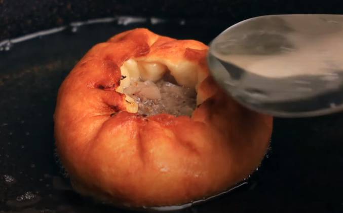 3. Затем защипывая края сформируем наши перемячи. Слегка прижмем ладошкой и готово! Приступим к обжарке. Нальем растительное масло в казан и когда масло нагреется опустим перемячи отверстием вниз. Обжариваем на среднем огне до золотистой корочки. Затем перевернем один раз и также обжарим вторую сторону. Нальем немного горящего масла в отверстие для лучшей прожарки начинки. После жарки перемячи выложим на бумажное полотенце либо салфетки, что удалить лишнее масло. Беляши по – татарски готовы. Приятного аппетита!Видео рецепт ютуб ниже 👇