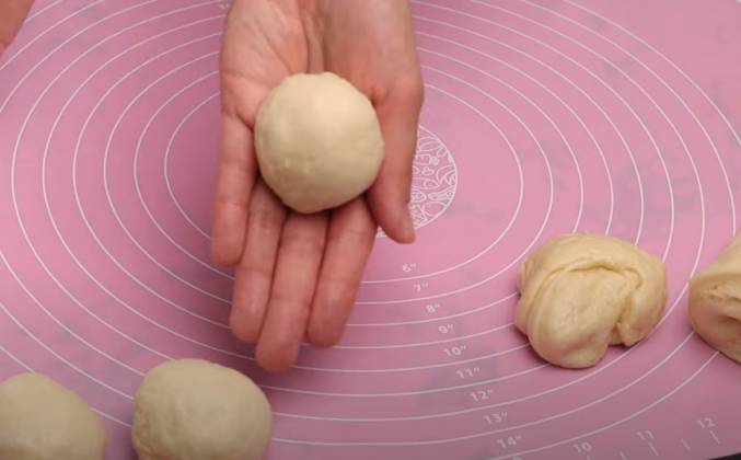 2. Уберем в теплое место примерно на один час, чтобы тесто поднялось в два раза. За это время приготовим начинку. В фарш 500 г. добавим мелконарезанный репчатый лук, половину луковицы среднего размера, одну либо две ч.л. соли, черный молотый перец пол чайной ложки. Все перемешаем до однородной массы. Далее, когда тесто поднимется, немного помнем его руками, чтобы вышел лишний воздух и разделим на небольшие кусочки. Из каждого кусочка сформируем небольшой шарик. Затем надавив ладошкой сформируем круг. Скалку лучше не использовать. На середину круга положим немного начинки и слегка прижмем ложкой.