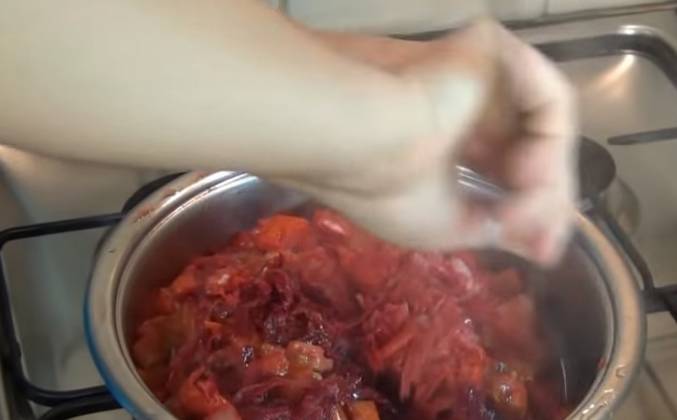 3. Перемешиваем до однородной массы. Теперь можно использовать крышку. Прикручиваем термоконтроллер обратно. Накрываем крышкой. Готовим на маленьком огне ещё 15-20 минут. Отключаем огонь. Открываем крышку. Перекладываем всё по стерильным банкам. Накрываем крышкой. Всё! Заготовка на зиму готова! Для приготовления борща в эту заготовку надо будет добавить картошку и бульон.Видео рецепт ютуб ниже 👇