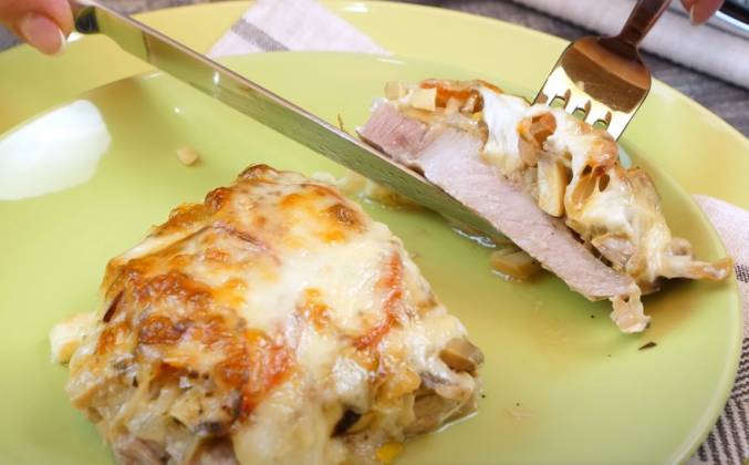 Как приготовить Мясо по французски из свинины и грибов в духовке рецепт пошагово