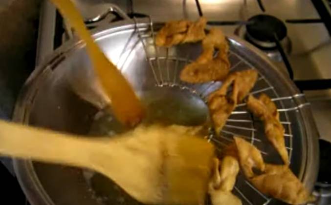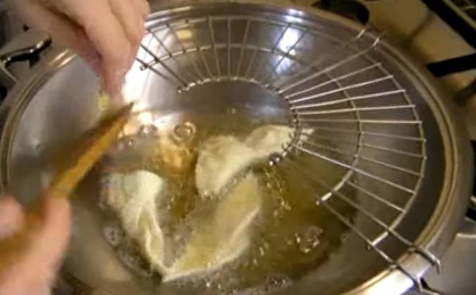 3. Откладываем в сторону. Вот он, наш хворост. Можно 2 раза накрутить: кому как нравится. Наискосок, на уголок. Чтобы уголки были острыми. Можно сделать бантиком. Крутим, как фантазии хватит. Масло достаточно разогрелось. Можно опускать в него хворост. Первый. Готовится хворост очень быстро. Он тут же надувается. Приобретает пышную форму. Главное - вовремя его перевернуть. С одной стороны он подрумянился. Переворачиваем на другую сторону. Выкладываем хворост на решётку, чтобы стекло лишнее масло. Теперь закладываем новую порцию. Перекладываем хворост в тарелку. Быстренькою, пока он ещё тёпленький. Посыпаем всё это сахарной пудрой. Порция готова. Проверим на хруст! Слышно? Хрустящий, легчайший, а главное вкуснейший - и всё это хворост!Видео рецепт ютуб ниже 👇