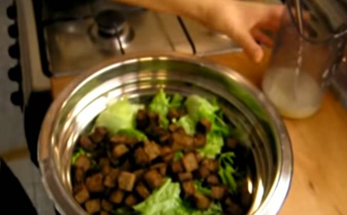 Салат цезарь без курицы. Сегодня мы приготовим классический вариант салата "Цезарь". Этот рецепт был придуман американским поваром итальянского происхождения Цезарем Кардини ещё в 20-40-х годах прошлого столетия. Салат состоит из: крутонов, т.е. обжаренных хлебцов, листьев салата и определённой заправки.