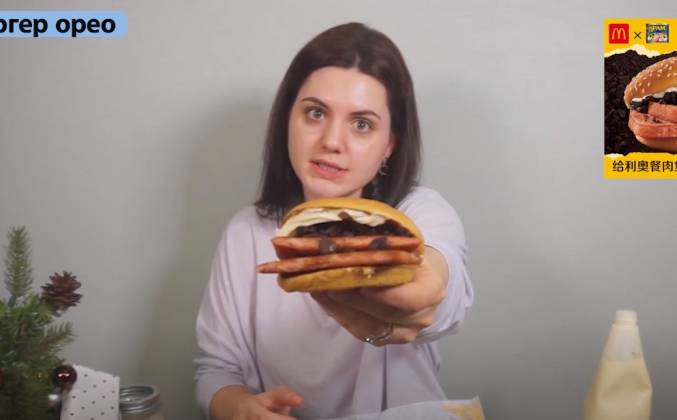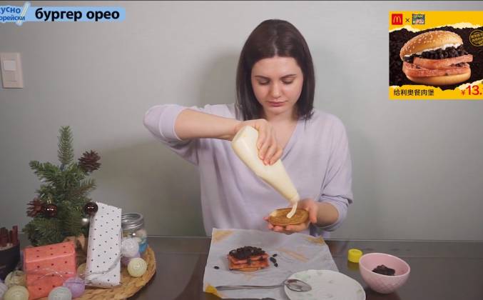 2.  Честно очень интересно какой будет результат. Но думаю будет ужасно. Если будет не вкусно,то просто покушаем орео. И майонез. Очень много майонеза. На картинке много майонеза. Думаю будет очень жирно. Ставим сверху. Думаю что похоже. Не так ли? Вот так выглядит новый бургер в китайском Макдональдс. Будем пробовать необычный бургер. Я очень люблю ветчину и орео. Но сочетание этих продуктов очень странное. Я думала что.. Во первых мне нравится. Вкус нормальный, но я думала что бургер будет сладкий из-за печенья. Я добавила много печенья. Но бургер получился очень солёный. Из-за ветчины. И здесь два куска. Майонеза почти не чувствую из-за ветчины. Мне нравится, но думаю будет вкуснее если добавить не два куска ветчины, а один. Щас попробую. Мне реально очень нравится. Вкусно.