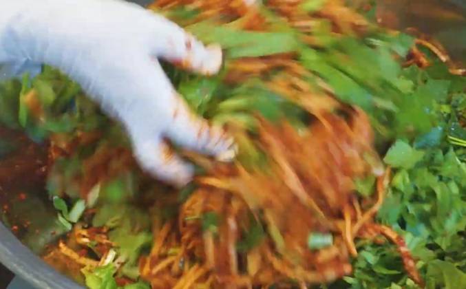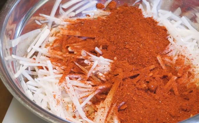2. Мы его посолили но оно ещё не готово я просто хочу вам показать о чем сегодня пойдёт речь. Очень ароматно хоть оно и не готово. Но я ещё раз повторюсь когда готовите соус для кимчи не важно с моим видео или по другому рецепту обязательно пробуйте его. Потому что то что вкусно мне, не вкусно для другого человека вот такое вот красивое вкусное сочное ароматное кимчи мы будем сегодня готовить. Запах просто отличный. Кстати кимчи такое острое красное можно готовить не только из пекинской капусты. Это уже в будущих видео я обязательно сниму и покажу можно готовить абсолютно из всего вы даже удивитесь из чего можно готовить кимчи получается всегда очень вкусно очень сытно и очень ароматно. Ну что давайте приступим к просмотру видео в котором моя свекровь по своему рецепту готовит кимчи.