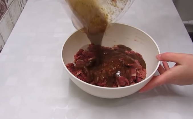 3. И все хорошо измельчаем. Выливаем в мясо и перемешиваем. Накрываем и оставляем на час. Берем 4 яйца, добавляем 4 ст л воды. Немного соли, немного перца и перемешиваем вилкой. Еще потребуется немного муки. Сковороду с маслом разогреть. Каждый кусочек обвалять в муке, затем в яйце и выкладываем. Жарить на небольшом огне с двух сторон до готовности. Обжариваем все.Видео рецепт ютуб ниже 👇