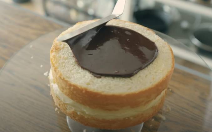 На этот раз я приготовил бостонский кремовый торт пирог из заварного крема и бисквита. Зачем называть это «пирогом», хотя это бисквит? Я тоже не знаю.