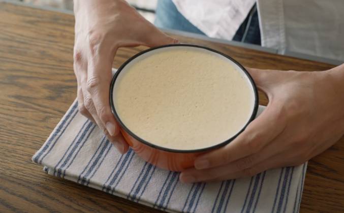 4. Чаша очень горячая, поэтому Вы можете слегка остудить ее в кастрюле, перед доставанием. Когда остынет до нужной температуры , накройте пищевой пленкой и отправьте в холодильник на ночь. Я достал охладившийся пудинг, но так как масло сверху твёрдое, немного нагрейте с помощью горячей воды. Нагревайте около 30 секунд. Переверните пудинг на тарелку и слегка потрясите в стороны. Вот он! Давайте попробуем! Это сладко-горькая карамель, поэтому этот пудинг подходит для взрослых. Я люблю этот классический фирменный пудинг. Вы можете купить пудинг в супермаркете, но попробовать эту карамель сможете приготовив ее сами. Пожалуйста, попробуйте приготовить этот классический пудинг дома. Спасибо большое за просмотр. Пока!Видео рецепт ютуб ниже 👇