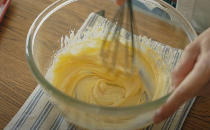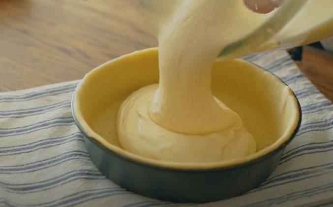 3. Перед тем, как испечь какой-либо торт, обязательно предварительно разогрейте его. Другой характеристикой этого десерта является использование козьего сыра. Вы можете сделать свежий сыр из коровьего молока таким же образом, а также из сливочного сыра. Разделить яичный желток и яичный белок, затем приготовить безе с яичным белком. Пшеничная мука может быть либо мукой для кекса, либо мукой общего назначения. Картофельный крахмал можно использовать вместо кукурузного крахмала.