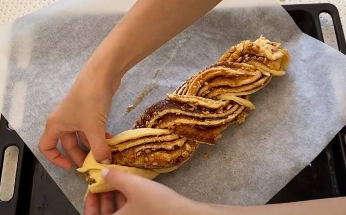 Как приготовить Плетенка косичка с корицей и орехами из творожного теста рецепт пошагово