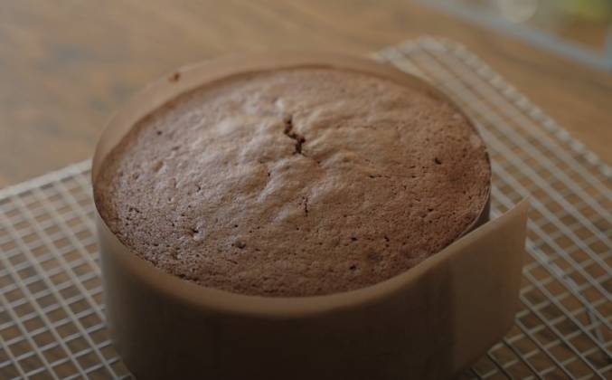 2. Добавьте в тесто немного сливочного масла и размешайте. Как только Вы закончите, размешайте тесто еще 15 раз. Форма диаметром 15 см. Когда бисквит приготовится, извлеките его из формы и дайте остыть. После остывания, разрежьте бисквит на 3 ломтика одинаковой ширины. Для Шварцвальдского торта используется вишневое вино под названием Кирш. Конечно, его можно не добавлять. Убедитесь, что смесь не нагреется, когда вы будете намазывать ее на торт.