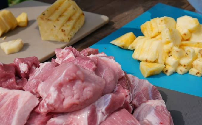 Как приготовить Шашлык с ананасом на мангале рецепт пошагово