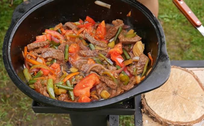 2. Как раз закипела вода, хорошенько посолить и забрасываем вариться лапшу. Лапшу сегодня использую покупную, если интересно как сделать самим, то год назад у нас был рецепт. Здесь выпадет ссылочка. И готовую лапшу перекладываем в миску. Очень удобно, все в одном месте, а для моих подписчиков компании куку подготовила бонус! Ссылочку на интернет магазин оставлю в описании. Переходите, заказывать себе такие печи. Удобно готовить. И начинаем жарить. Растительное масло. Для того, чтобы приготовить вкусный, хороший, сочный лагман нам нужна система точечного нагрева. Здесь как раз жар идет снизу, сильно разогревает дно, но по бокам продукты не будут греться, а будут тушиться. Поэтому они будут одновременно и сочными и мягкими.
