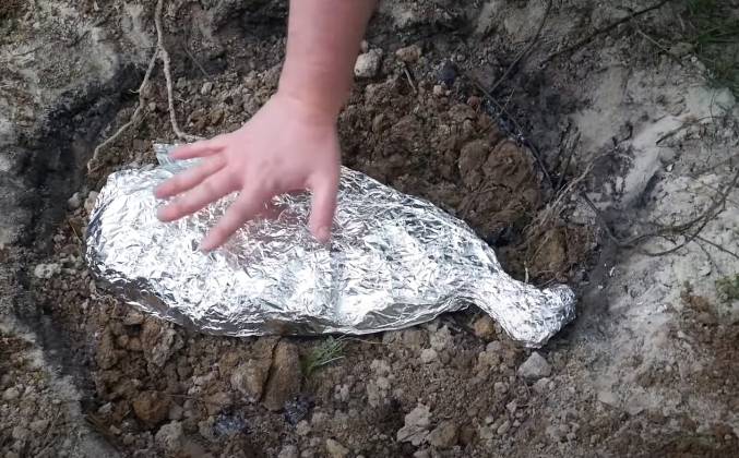Баранья нога в земле запеченная. Баранья нога это конечно хорошо, но первым делом нам нужно развести хороший костер и вырыть под него яму. С этого и начнем. Пускай разгорается, нужно прогреть землю. Отличный костер! Пускай разгорается, а мы пока займемся бараньей ногой.