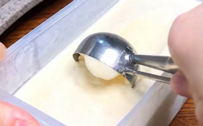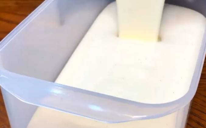 3. Аккуратно перемешиваем и переливаем в контейнер. Убираем в морозильник. И очень важно через каждые 30-40 минут перемешивать мороженое, проделываем так 4-5 раз. Ну все, как видите все очень просто. Приятного аппетита 🤍Видео рецепт ниже 👇