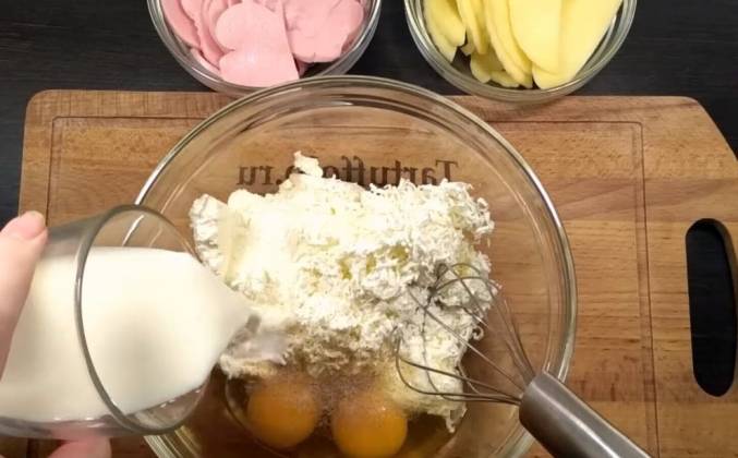 2. Теперь нам понадобится тонкий лаваш, я его уже нарезала по форме. Легче всего нарезается самыми простыми ножницами. Вот такие получились кусочки. Получились ровненькие квадратики. Кроме того, еще в качестве начинок можно использовать или ветчину/колбасу или отварное куриное мясо, или обжаренный фарш. В общем, это по желанию. Затем слой сыра. Но вообще, можно совсем обойтись без вот этих начинок и просто пролить вот это заливкой. Вкусный лаваш и добавить зелень например, или чеснок - будет тоже очень вкусно.