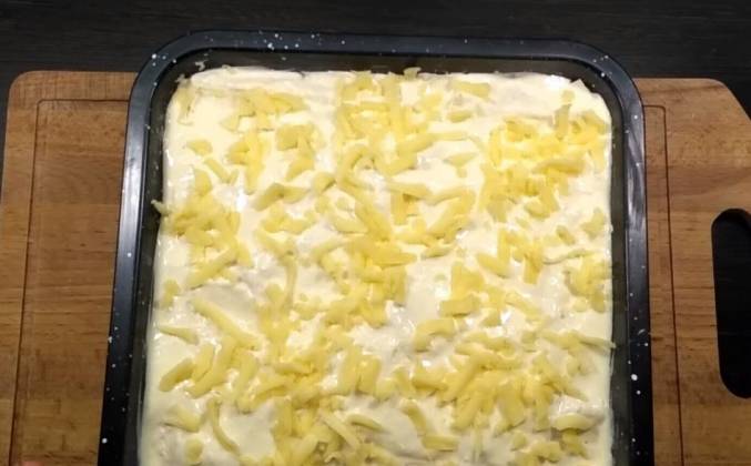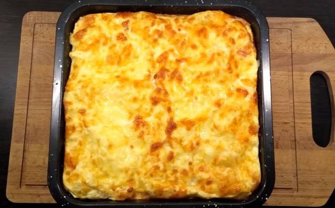 4. Отправляем в разогретую до 180 градусов духовку, минут на двадцать пять. Я потом точно скажу сколько времени понадобилось, но вот он у меня как раз получился - двадцать пять минут. Смотрите какой аппетитный пирог, пусть немножко остынет, а потом будем вынимать из формы. Я сейчас сначала переверну на одну тарелку, а потом на другую. Боюсь поломать, вот так, теперь получается потрясающий вкус, с сырной хрустящей корочкой.Видео рецепт ютуб ниже 👇