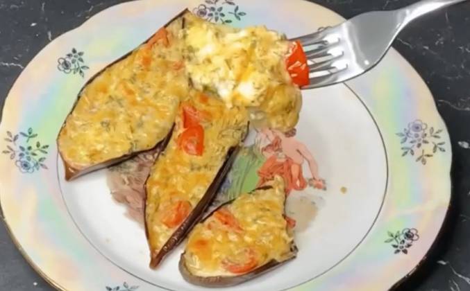 Баклажаны с сыром, чесноком и помидорами в духовке