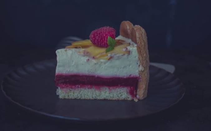 Приготовьте английский крем: молоко доведите до кипения, смешайте желтки с сахаром и темперируйте горячим молоком. Верните смесь на плиту и постоянно мешая венчиком варите до температуры 83 С. Добавьте ванильную пасту и отжатый желатин. Охладите до 25 С и введите взбитые сливки. Используйте сразу же.