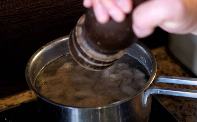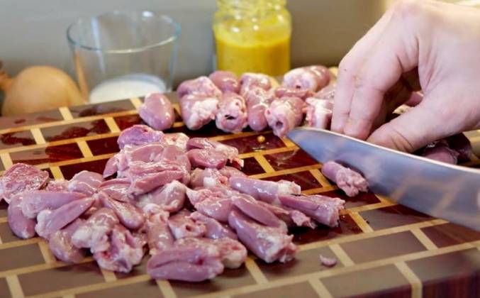 2. Вот почему мы будем менять бульон, потому что при варке сердечек наружу выходит много всякой гадости. Эту гадость мы сейчас уберем, ну, а потом поменяем и сам бульон. Сердечки проварились 5 минут, я откинул их на дуршлаг, сейчас пересыплю обратно в кастрюлю, залью водой и буду варить дальше. Чтобы сердечки получились мягкими и вкусными, варить их надо довольно долго. Я буду варить их целый час. А сейчас можно добавить к ним соль. Грибы необходимо хорошенько промыть. Шампиньоны необходимо нарезать на произвольные кусочки. Их можно разрезать пополам или же на 3 части. Лук чистим и нарезаем полукольцами. Разогреваем сковородку, закидываем в неё грибы и лук, и обжариваем все это дело до готовности минут 10, может быть, немного больше.