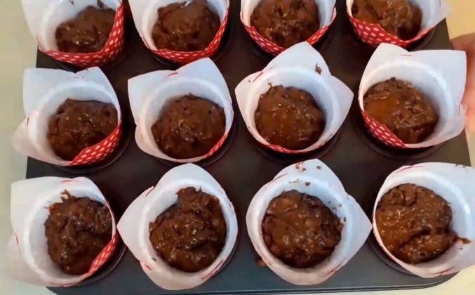 2. Если лопости вашего миксера, слишком частые, то перемешивайте лучше крючками. Ну вот посмотрите какая масса получилась, с невероятным ароматом кофе, шоколада и корицы. Далее подготавливаю кексницу с 12 ячейками. И в каждую ячейку, вставляю 12 стаканчиков бумажных. Заполняю стаканчики тестом и убираю в духовку разогретую до 180С на 20 минут. Друзья, обязательно проверяйте готовность маффин шпажкой. Если ваша шпажка выходит с тестом, то значит ваши маффины, должны допечься где то 2-3 минуты. Если после того как вы проткнули маффин шпажкой, шпажка выходит с шоколадом, то значит всё нормально, потому что горячие маффины внутри имеют жидкий шоколад.