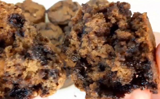 3. Обратите внимание, то что готовый маффин, имеет пористую структуру, у него трещины, у него дырочки всякие, это благодаря тому, то что в маффинах находится шоколад (шоколад) рубленный, как и орешки. То есть тесто не однородное. Именно благодаря этому, маффины имеют такую красивую структуру, необычную. Друзья обязательно приготовьте шоколадно-кофейные маффины у себя дома. Вот я сейчас разламываю маффин. Посмотрите, у меня маффин ещё тёплый, видно как шоколад блестит, видно орешки, видно вот эту структуру, которая такая пористая. Ощущается очень сильно аромат: корицы, кофе, шоколада. Особенно те, кто очень любит шоколад, для вас это просто будет находка.Видео рецепт ютуб ниже 👇