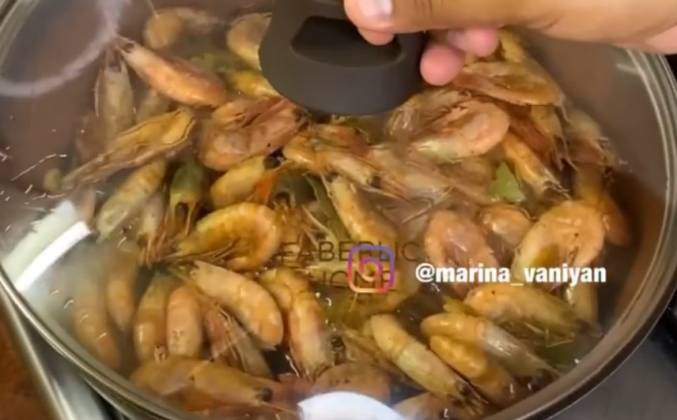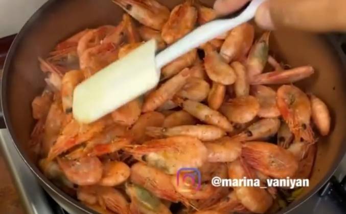3. Далее выкладываем креветки, накрываем крышкой и оставляем тушиться примерно 5-7 мин. далее перемешиваем и ещё раз оставляем на 5 мин. Блюдо готово, приятного аппетита.Видео рецепт ниже 👇