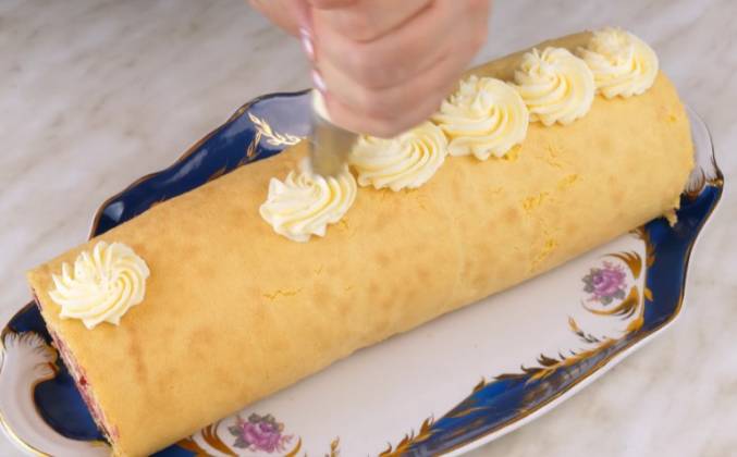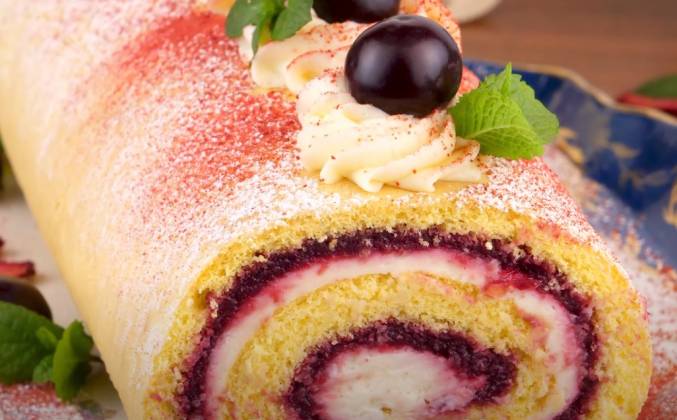 Бисквитный рулет с джемом и кремом из творожного сыра