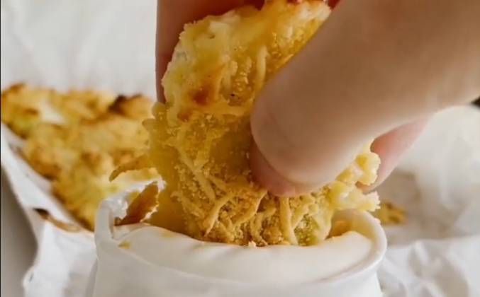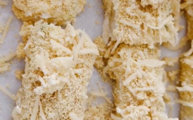 2. Обмакните кабачки в сметане и обваляйте в сухарях с сыром. Выложите кабачки на противень и выпекайте при 180С минут 20-25.