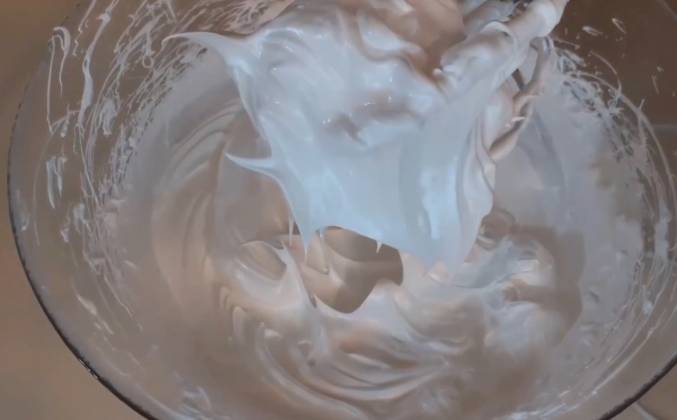 2. Желтки перемешиваю на высоких оборотах миксера, в течение 1 минуты, при этом желтки начинают светлеть. Ну вот желтки я взбил, затем желтки я вливаю в белки и всё перемешиваю миксером, на низких оборотах, до однородного состояния. Обратите внимание, что во время перемешивания, цвет массы, становится кремовый. Как только перемешал, белково-желтковую массу, всыпаю просеянную муку. Обязательно муку просеивайте. Затем на малых оборотах миксера, всё перемешиваю в течение 1 минуты, при этом лопасти миксера, должны находиться под углом, таким образом, чтобы масса набирала в себя, больше кислорода. Долго перемешивать не нужно. Как только тесто вмешалось можно остановится.