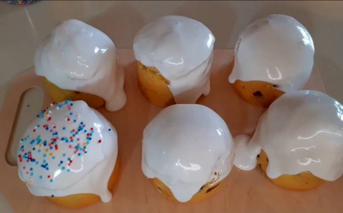 4. После того, как я открыл эту глазурь, я другие глазури, не использую, только эту. Это самая идеальная глазурь на куличи. Она очень вкусная и нежная, и очень красиво смотрится, на куличах потому что она не ломается и не крошится. Свою нейтральную глазурь, я наносил на тёплые куличи, если вы хотите, чтобы ваша глазурь, не так сильно закрыла ваши куличики, дождитесь когда они остынут и только потом наносите, на куличи. Я же хотел, чтобы глазурь закрыла полностью мои куличи, поэтому я нанёс её, на тёплые куличи. Вот посмотрите, какой красивый кулич получился. Он невероятно вкусный, напоминает чем-то булочки.Видео рецепт ютуб ниже 👇