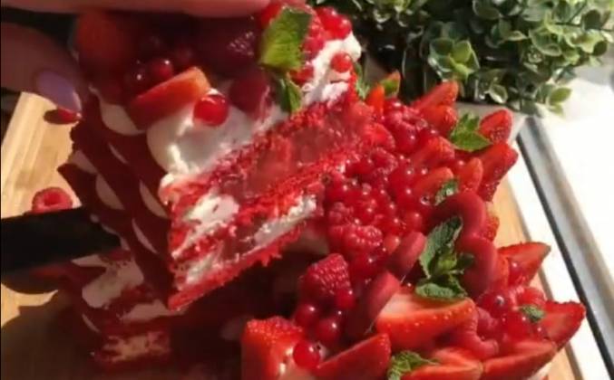 Как приготовить Медово клубничный торт в виде сердца рецепт пошагово