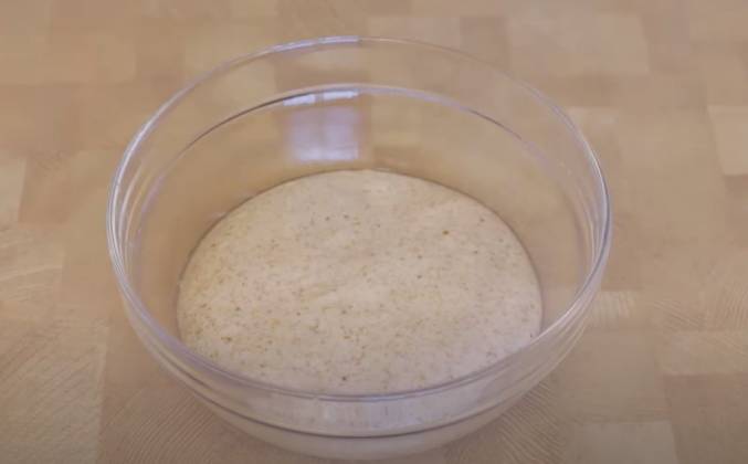 100 г опара (10 г пшеничная закваска 100% влажность + 50 г вода + 50 г мука)