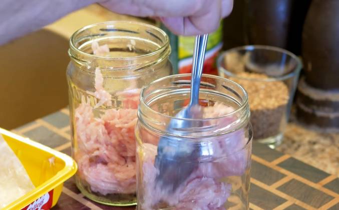 Как приготовить гречку с фаршем - очень простой и быстрый вариант приготовления обеда. И готовить мы будем мясо с гречкой в банке. Сразу хочу отметить, что это не то блюдо, которое можно поставить на праздничный стол и удивить своих гостей, но это сбалансированный по жирам, белкам и углеводам прием пищи, который готовится очень просто. Фишкой этого рецепта является то, что его можно разнообразить от готовки до готовке, меняя мясо и меняя крупу. И для сегодняшнего рецепта я возьму 300 г куриного фарша. Но можно взять абсолютно любое другое мясо или другой фарш, например, индейки или говядины. 100 г гречки. Опять-таки вместо гречки можно использовать булгур или рис. Банку консервированных томатов весом 400 г, 1 морковь, 1 репчатый лук, 2 зубчика чеснока. Ну и, как всегда, немного соли и перца. Из всех перечисленных продуктов я приготовлю две порции обеда вот в таких пол-литровых банках. Поехали!