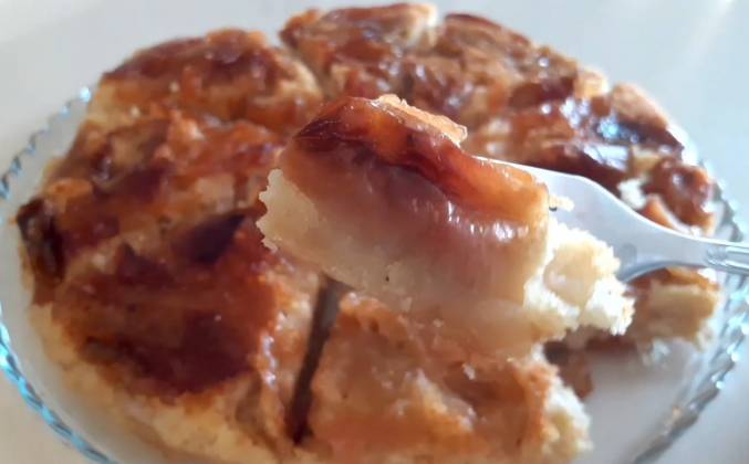 4.  Снимаю сковородку с плиты. Переворачиваю пирог на плоскость. Устанавливаю сервировочное блюдо для пирога и снова переворачиваю в исходное положение. Яблочный пирог готов! У него потрясающий аромат яблок и карамели с топлёным маслом. Это настолько вкусный и нежный пирог, что удержаться от такого лакомства практически невозможно. Когда я готовлю яблочный пирог на сковороде, соседи просто с ума сходят от запаха, исходящего из моей квартиры. Как только начинаю кушать яблочный пирог, рука автоматически тянется за новым кусочком, чтобы насладиться этим изысканным вкусом. Удивите своих близких и родных, приготовив яблочный пирог на сковородке. Вкус этого шедевра не оставит равнодушным никого, я это гарантирую. Рекомендую подавать яблочный пирог в карамели к горячему чаю.Видео рецепт ютуб ниже 👇