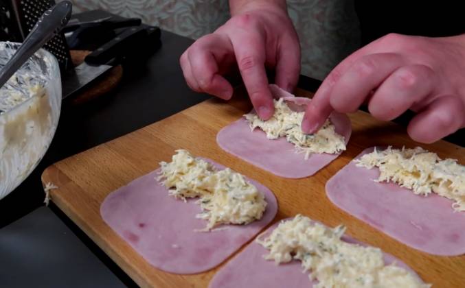 Как приготовить Рулеты из ветчины с сыром и чесноком рецепт пошагово