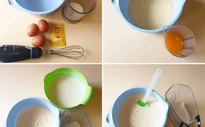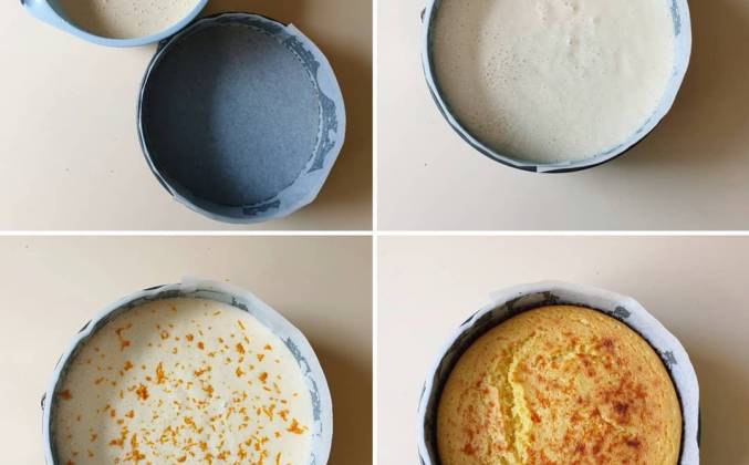 2. Взбиваем яйца с сахаром и ванильным сахаром до белой пены. Далее вводим взбитые яйца с сахаром в манку и хорошо перемешиваем. ⠀ Добавляем апельсиновый сок и снова перемешиваем. ⠀ В муку добавляем разрыхлитель и просеиваем в тесто. Ещё раз перемешиваем до однородной консистенции. ⠀ Подготавливаем противень или форму для выпекания. ⠀ Я взяла разъёмную форму диаметром 24 см. ⠀