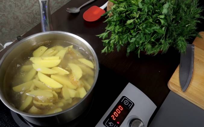 2. Вода у меня практически закипела, я ее солю и засыпаем туда картофель. Во время того, как наша картошка кипела из верхнего слоя ушёл лишний крахмал, который позволит корочки стать более хрустящей. Достаем нашу картошку из горячей воды и перекладываем обратно в миску. Дадим ей немного остыть и обсохнуть. Теперь, когда наша картошка сварилась и хорошенько остыла, самое время сбрызнуть растительным маслом и добавить туда специи.