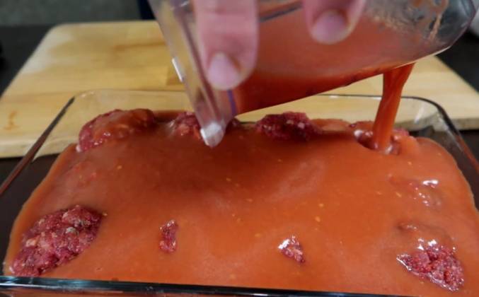 3. Добавим сюда буквально 100 миллилитров воды и хорошенько размешать. Заливаем наши тефтели. Отправляем запекаться в разогретую до 180 градусов духовку на 35-40 минут. Ну что друзья, прошло 40 минут и мои любимые тефтельки в томатном соусе готовы! Посмотрите на эту красоту! И замечательный томатный соус. Добавим к этому немного тертого сыра и отличный насыщенный мясной домашний ужин вам обеспечен!Видео рецепт ютуб ниже 👇
